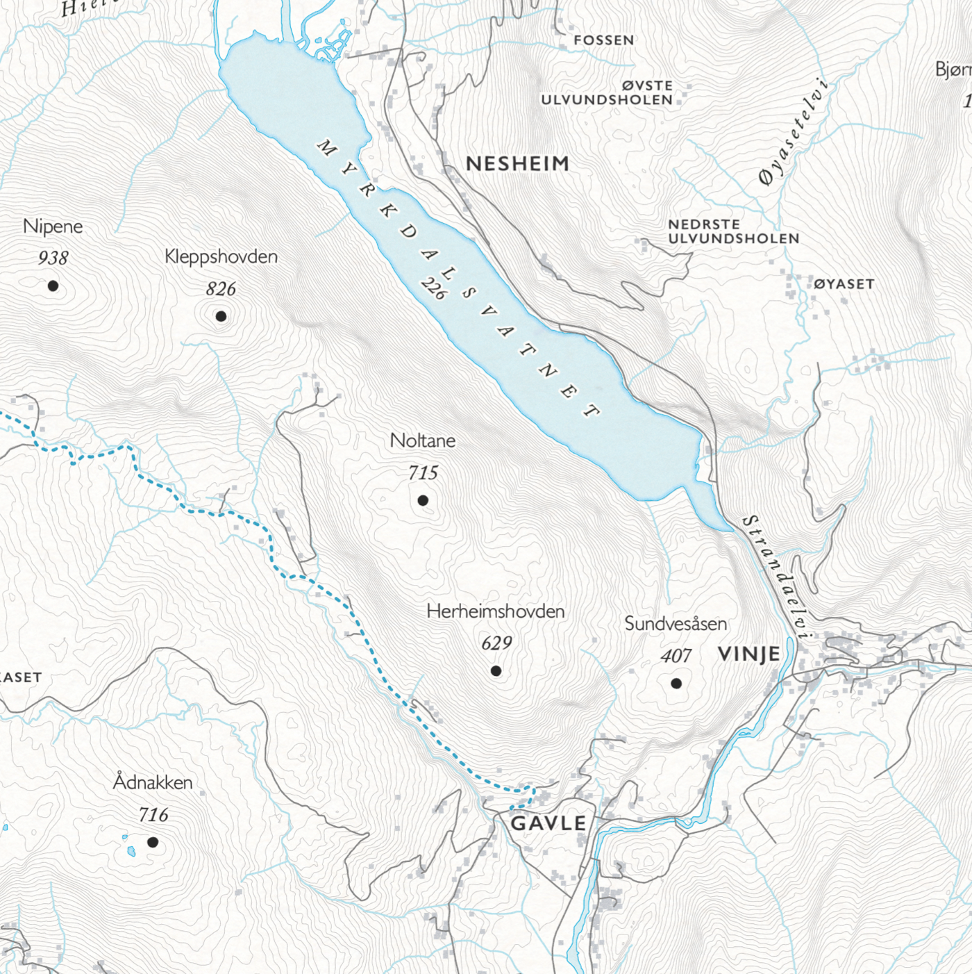Vårt skikart over Myrkdalen viser deg alle de fine langrennsløypene fra Vikafjell i nord til Vinje i sør.