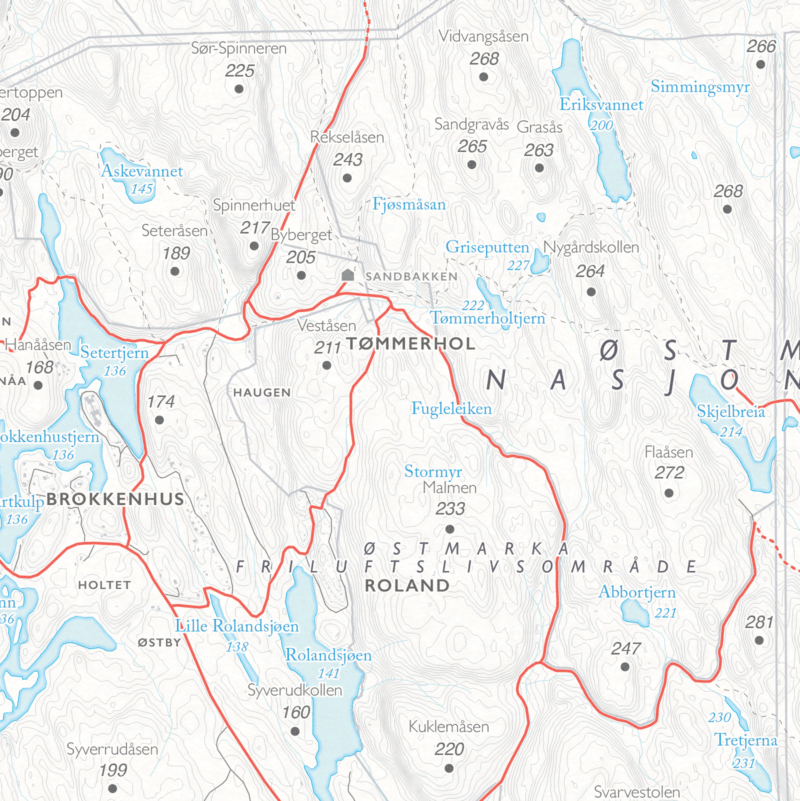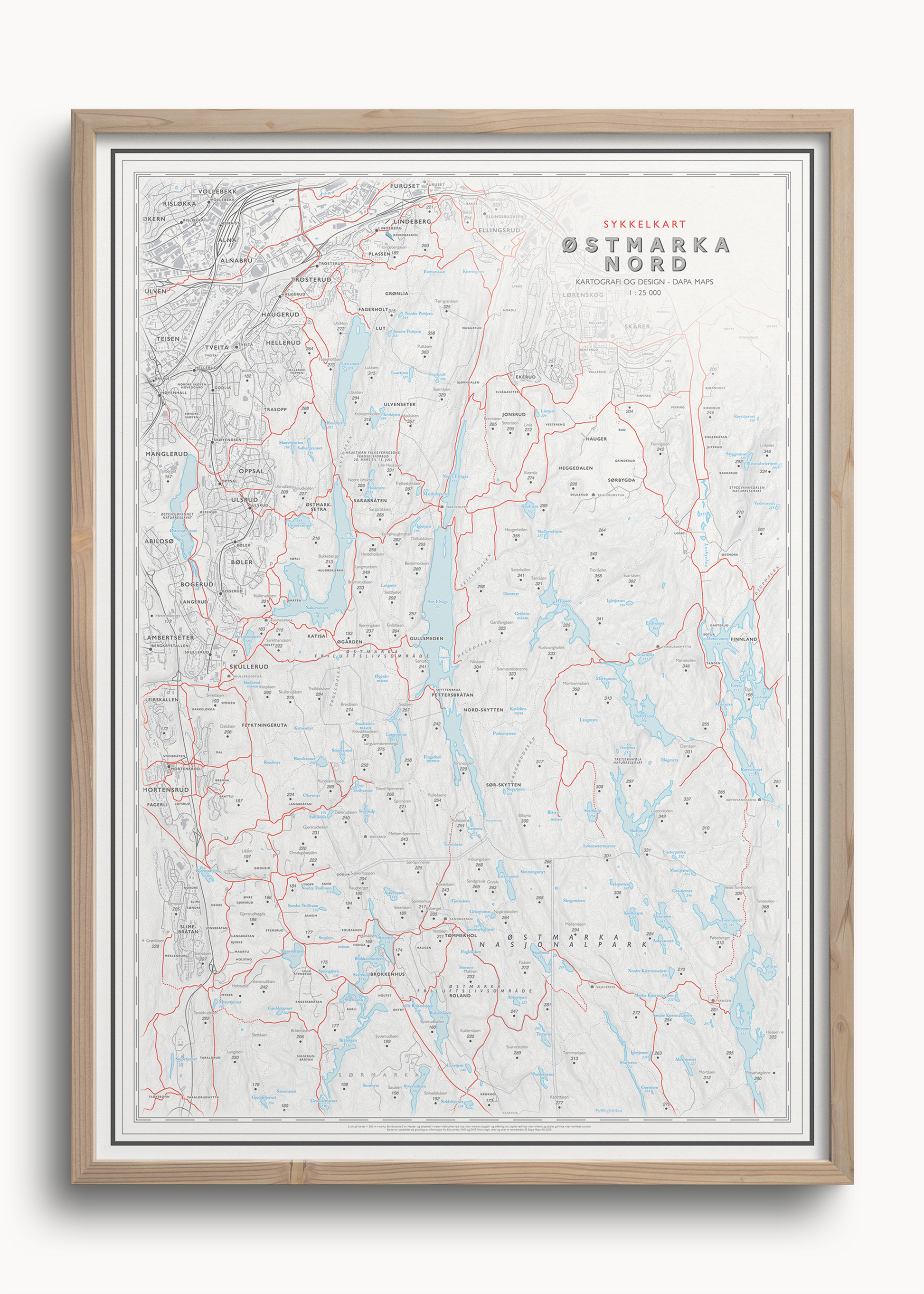 Vårt kommende sykkelkart over den nordlige delen av Oslo Østmarka. Fra Ellingsrud i nord til Vangen i sør og Skullerud i vest til Røyrivann i øst. Kartet forventes å ferdigstilles i løpet av oktober.